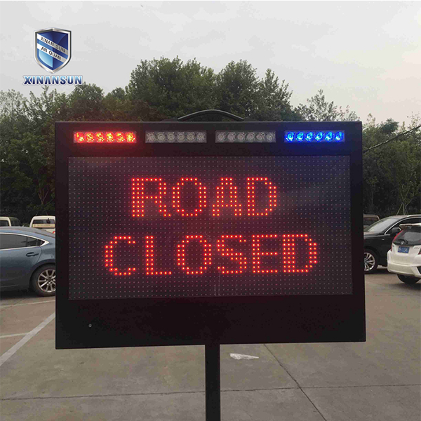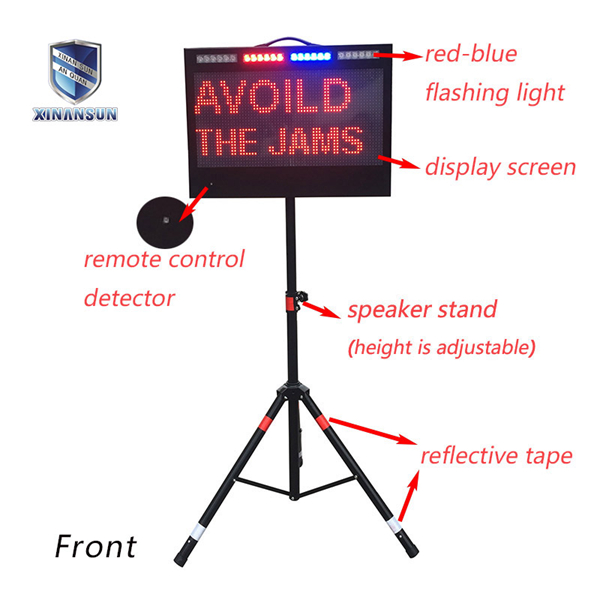 Portable led warning sign composed of warning light, LED display screen and tripod.