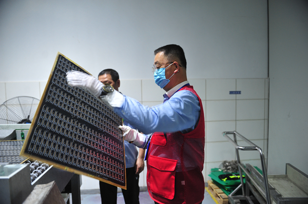 市总工会女工部吴赛峰被分配在化金后处理收放板岗位上,板子从上一条流水线浸过药水后搬到下一条流水线进行检测。这是一个“纯体力活”。板子大小40厘米×40厘米,虽然重量不是很沉,每个小时搬运 300余块。“虽然板子不是很重,但是全程站着也是一种考验。机器不停,我就不停。”一天的劳动,令他汗流浃背,这让他对一线工人的艰辛有了切身体会,也更坚定了要做好服务职工的决心。