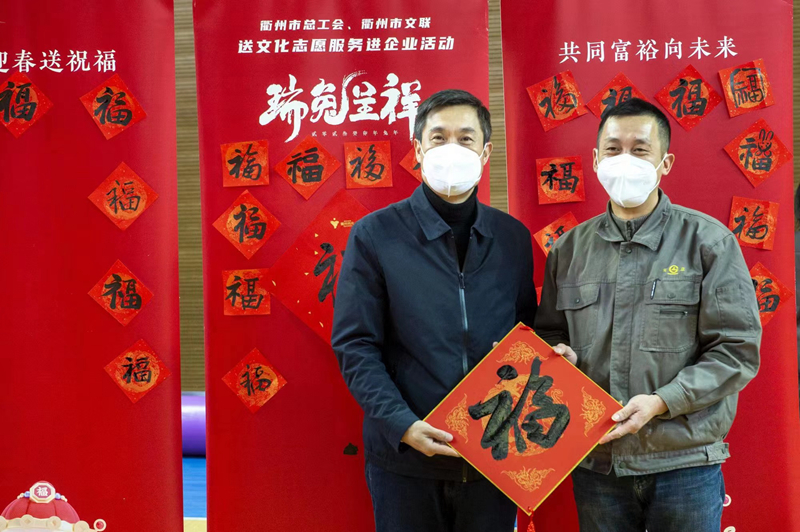 送文艺包,开展新春送福活动。衢州市总工会联合当地邮政、文联、书法家协会等部门开展“温暖回家路·述说身边的共富”、“新春送福”等活动,为返乡农民工和留衢过年的外地职工赠送书刊杂志上万册,赠送春联福字近万幅,丰富了职工的精神文化生活。