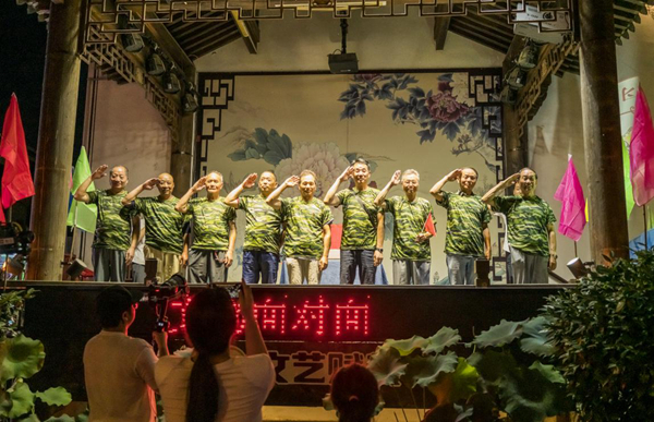 ▲来自松园社区的退伍军人敬礼,致敬最可爱的人