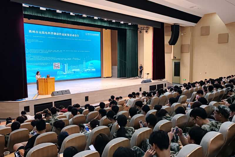 讲座的高潮出现在短波通联演示环节。衢州市业余无线电协会的志愿者们现场架设设备,成功与远方实现通联。当那跨越空间的信号清晰地回响在报告厅时,现场爆发出经久不息的掌声,同学们亲身体验到了无线电跨越山海的独特魅力。